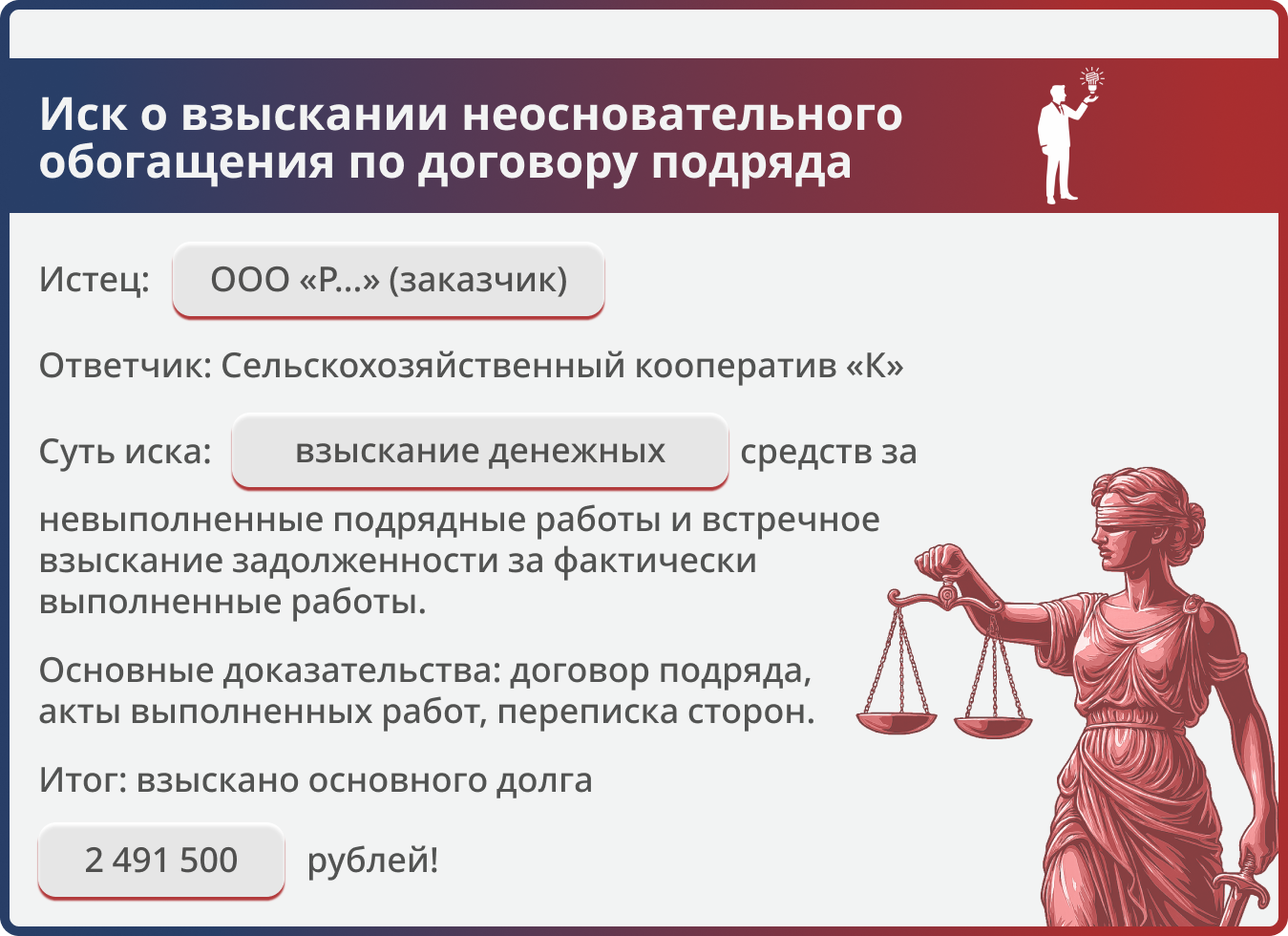 Защита подрядчика: отказано в иске заказчика, взыскано 2,5 млн руб. долга и неустойка