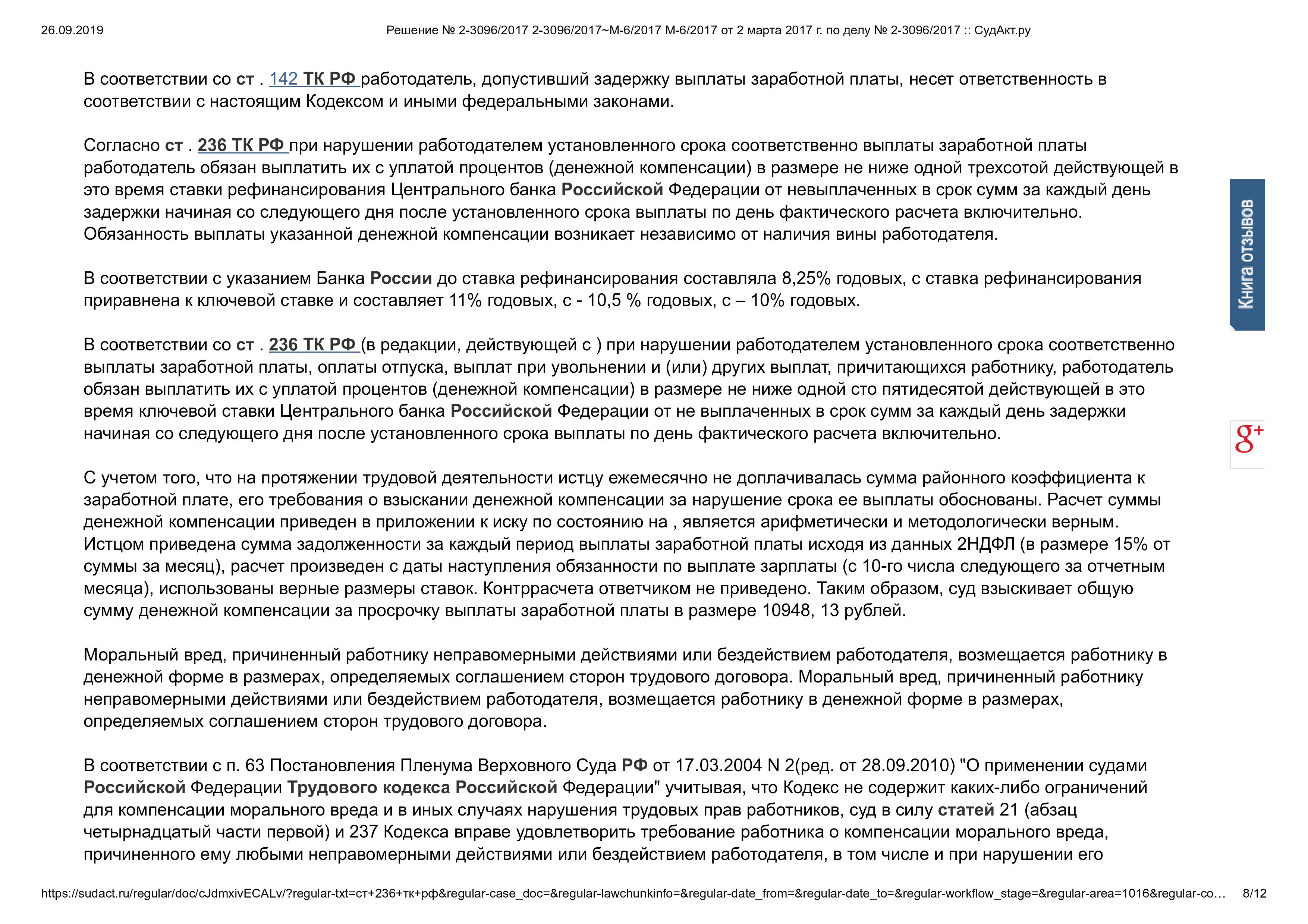 Суд решил обязать ответчика внести в трудовую книжку запись о приеме на работу на должность курьера. Взыскать с ответчика в пользу истца задолженность по заработной плате в размере 79097 рублей 85 коп. (с последующим вычетом необходимых налогов и сборов), денежную компенсацию за задержку выплаты заработной платы в размере 10948 рублей 13 коп., компенсацию морального вреда в размере 3000 рублей.
