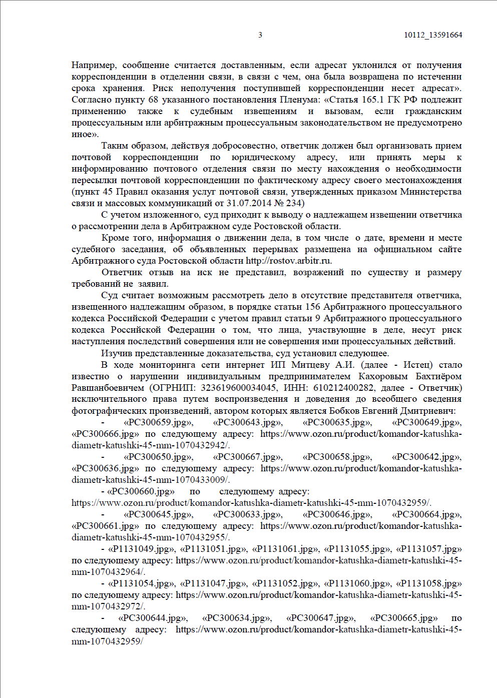 Выявили, что продавец на площадке Ozon без разрешения скопировал 30 профессиональных снимков катушек для металлоискателей, автором которых является Бобков Е.Д. и использовал их в своих коммерческих карточках товаров на маркетплейсе, зарабатывая на чужом контенте.