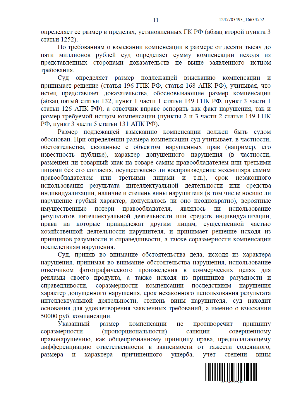 50 000 ₽ за незаконное размещение фото на сайте компании.