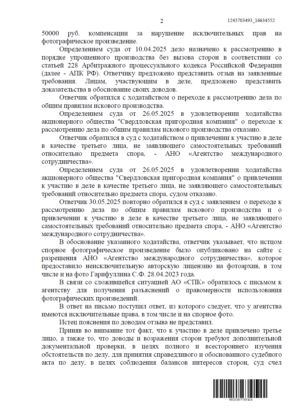 Однако популярность фотографий неизбежно приводит к рискам — изображения нередко используют без разрешения. Чтобы защитить свои права и сохранить контроль над собственным творчеством, Сергей обратился к нам. За юридическое сопровождение отвечал Егоров Андрей, который помог зафиксировать нарушения, подготовить необходимые документы и выстроить стратегию защиты.