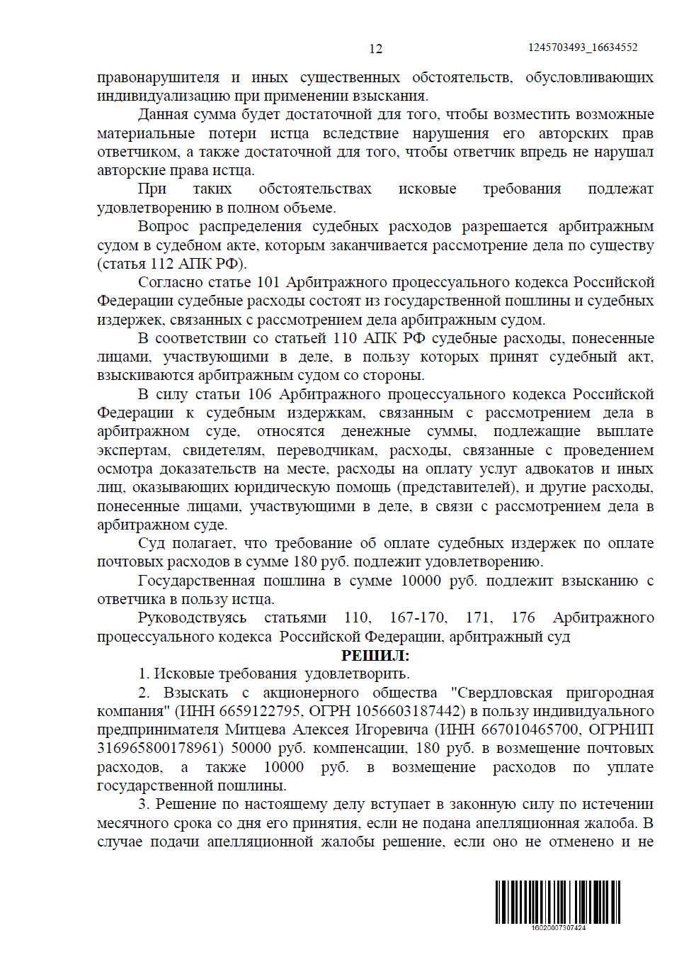 Суд удовлетворил иск полностью и взыскал с АО «Свердловская пригородная компания» в пользу нашего клиента: