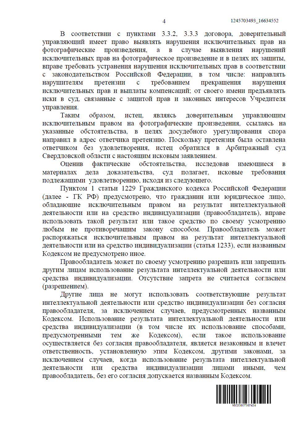 • Нарушение исключительных прав на фотографическое произведение