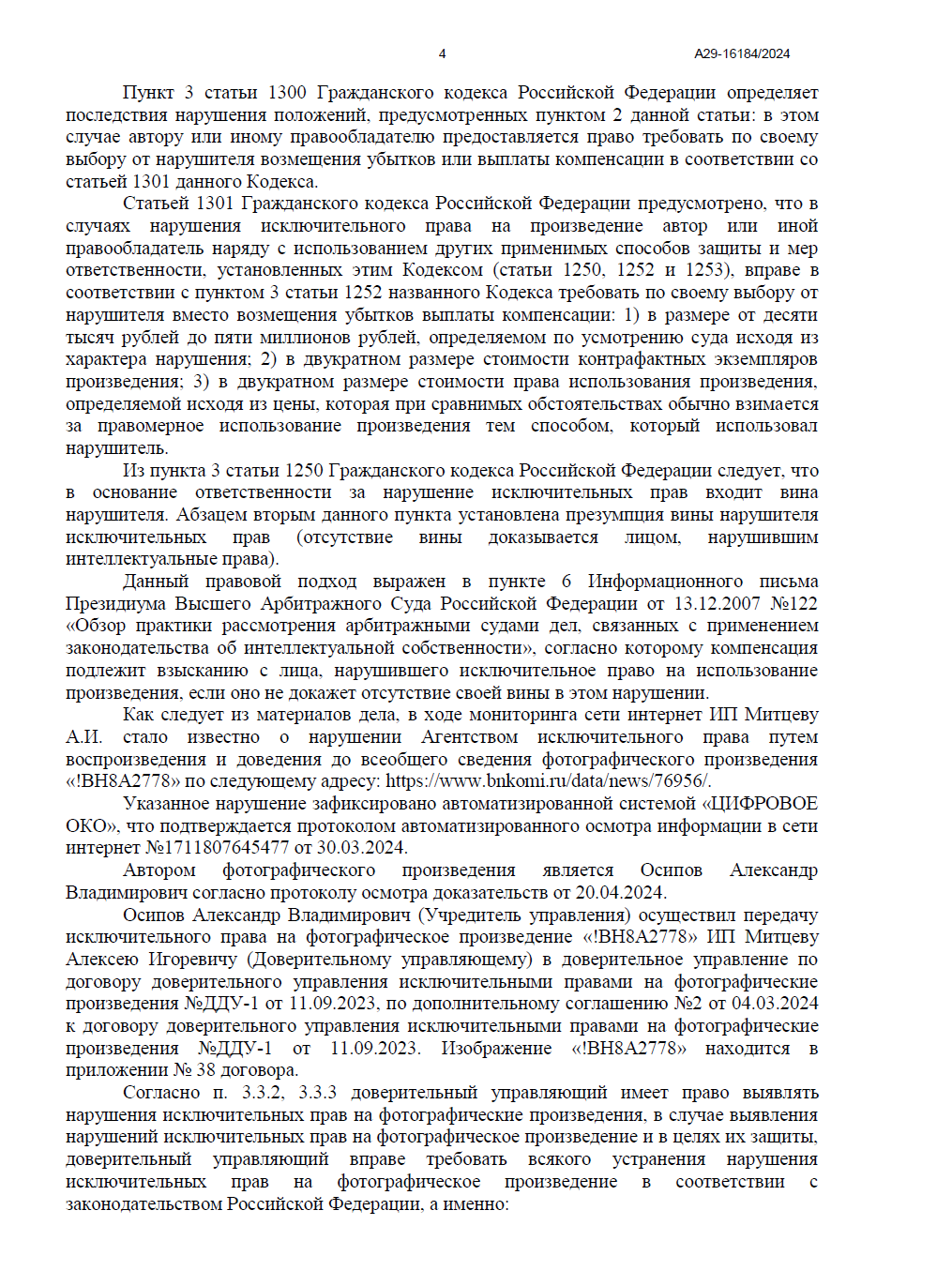 Арбитражный суд Республики Коми полностью удовлетворил наши требования. Суд признал, что использование фотографии без указания имени автора (Осипова А.В.) не может быть признано свободным цитированием, а срок исковой давности не пропущен.